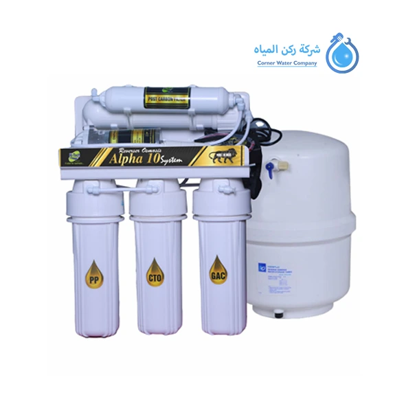 جهاز تحلية منزلي يركب في المطبخ تحت المجلى يحتوي على 7 مراحل لأزالة الشوائب والروائح والأتربة والاملاح الزائدة، ومرحلة لموازنة قلوية الماء (PH) واخرى لتحسين جودة المياه – مياه المعدنية الطبيعية.